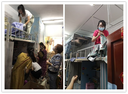 有动如风的老师健步如飞的搬运行李,狭窄的走廊里,有他奔跑的身影。炎热的天气,走廊里没有一丝风,放满了打包好的行李物品,但阻挡不了老师们搬运的步伐,高效率的工作,让整个过程顺利而温暖。