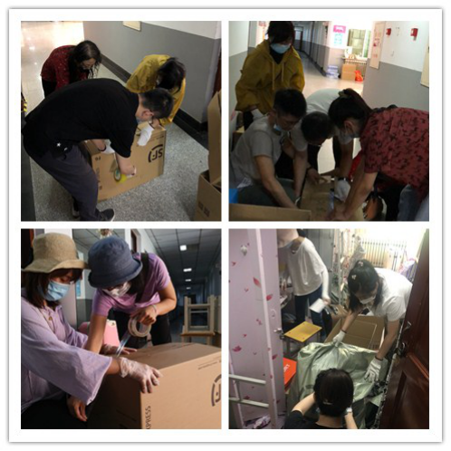 6月29日至7月2日为毕业生返校日,此期间学院需要完成150名本科生和11名研究生的行李整理寄送工作,可谓时间紧,任务重。学院领导班子全员上岗,带领教师党员冲到寝室工作第一线,化身“打包员”“搬运员”,传递温暖师生情。