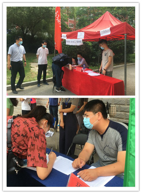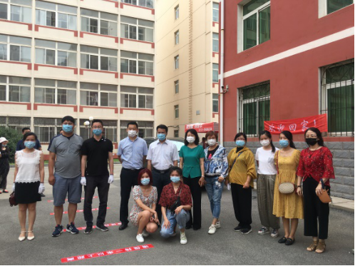 学校领导到现场慰问工作,与学院老师和返校毕业生合影