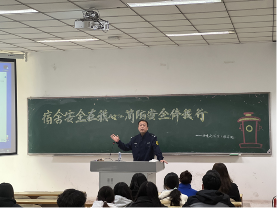 最后,他再次强调宿舍消防安全的重要性,同学们必须对宿舍消防安全问题高度重视,一定要将安全问题放在首要位置,共建和谐稳定安全的校园环境。