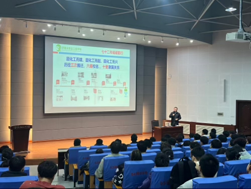 朱明昌围绕“认识化工大学、走进环境学院、共化成长成才”三个部分展开。他介绍了学校建校72年来砥砺前行的辉煌历程,着重强调了化大师生在艰苦奋斗中凝铸而成的“化工报国”这一卓越精神品质。在此基础上,他进一步阐述了学院的发展历程,详细介绍了学院在人才培养、学科建设、科技创新、国际交流、服务社会等方面所取得的成绩。并从“‘双碳’需求、空间巨大、大有能为”“生命奥秘、生活变革、大有可为”“国家战略、行业保障、大有作为”三个维度,深入解读了学院招生专业的国家战略布局和未来发展前景。其间,他也说明了学院为2024级本科生实施“七一一”强学筑基工程的相关情况。