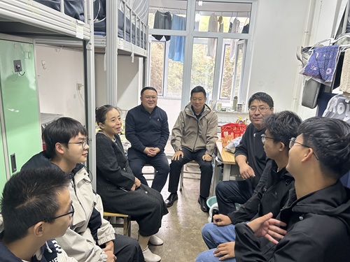 随后,我院教师走进学生宿舍,慰问留校新生,细致了解新生适应情况,叮嘱同学们重视学业、愉快生活。远离家乡的同学们表示,将尽快融入校园生活,以勤奋学习、优异成绩回报学校与国家的培养。
